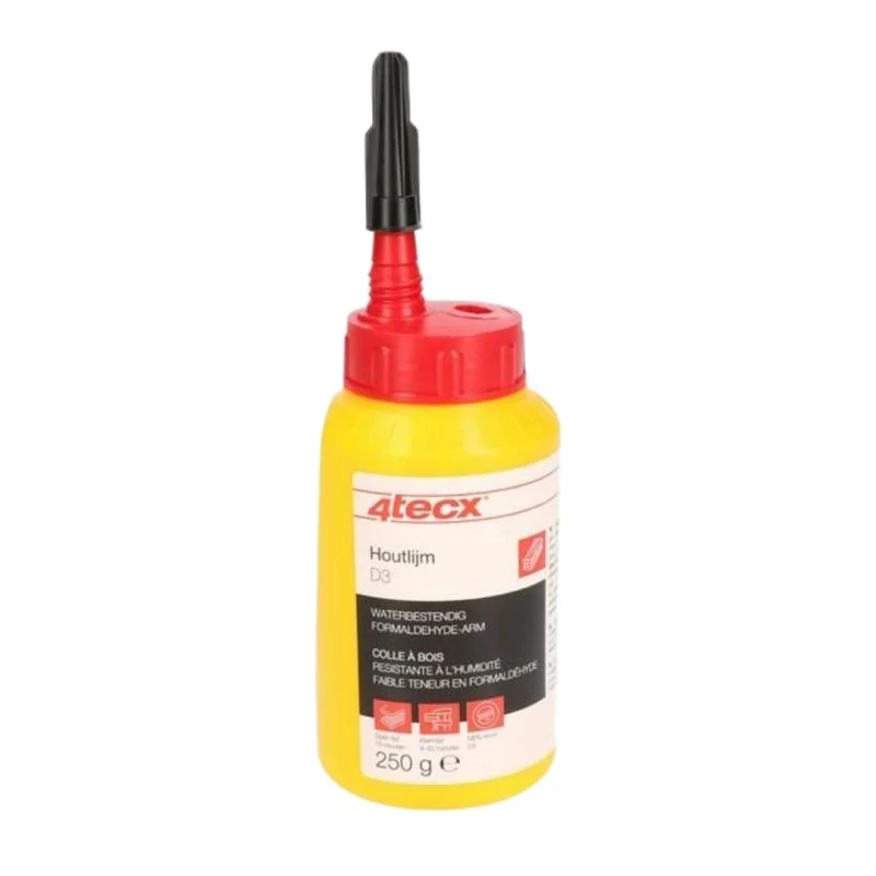 De 4tecx houtlijm D3 formaldehyde-vrij in een verpakking van 250 gram is een milieuvriendelijke keuze voor houtbewerking. Deze lijm is waterbestendig, eenvoudig te verwerken en levert een sterke, duurzame verbinding tussen houten delen.