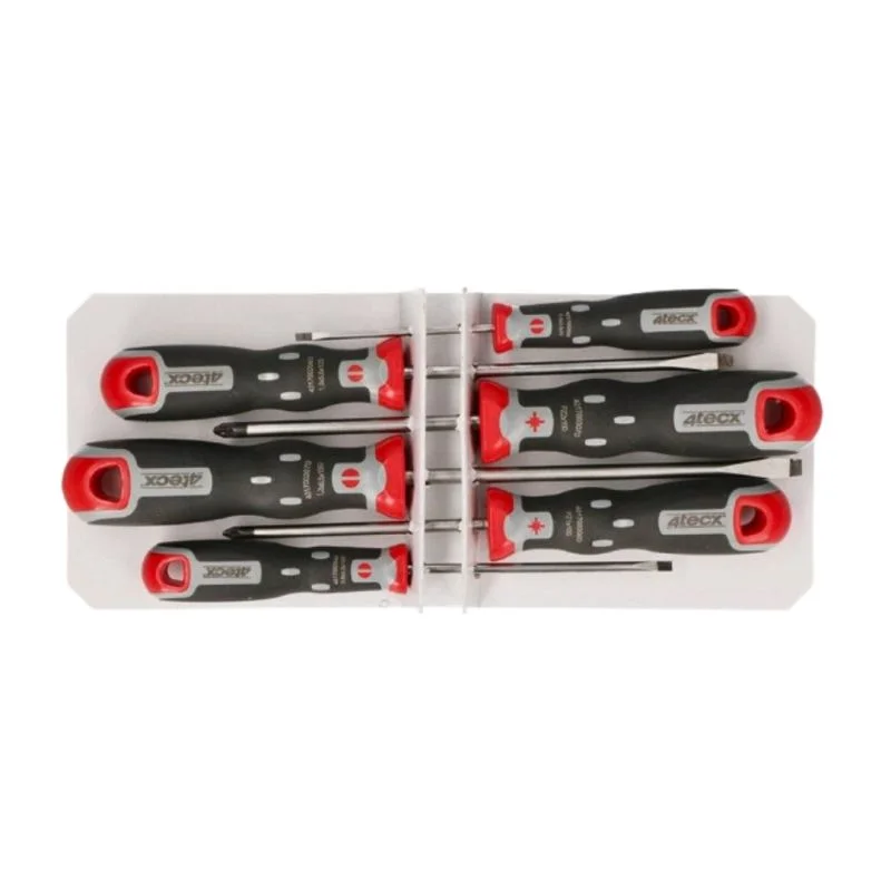 Schroevendraaierset 6-delig bestaande uit 4 sleufschroevendraaiers en 2 Phillips-schroevendraaiers. De schroevendraaiers zijn uitgevoerd met een ergonomische meercomponentgreep voor optimale grip, comfort en krachtsoverdracht. Dankzij de stevige afwerking en kleuraanduiding zijn de schroevendraaiers eenvoudig te herkennen en geschikt voor zowel professioneel gebruik als doe-het-zelf klussen.