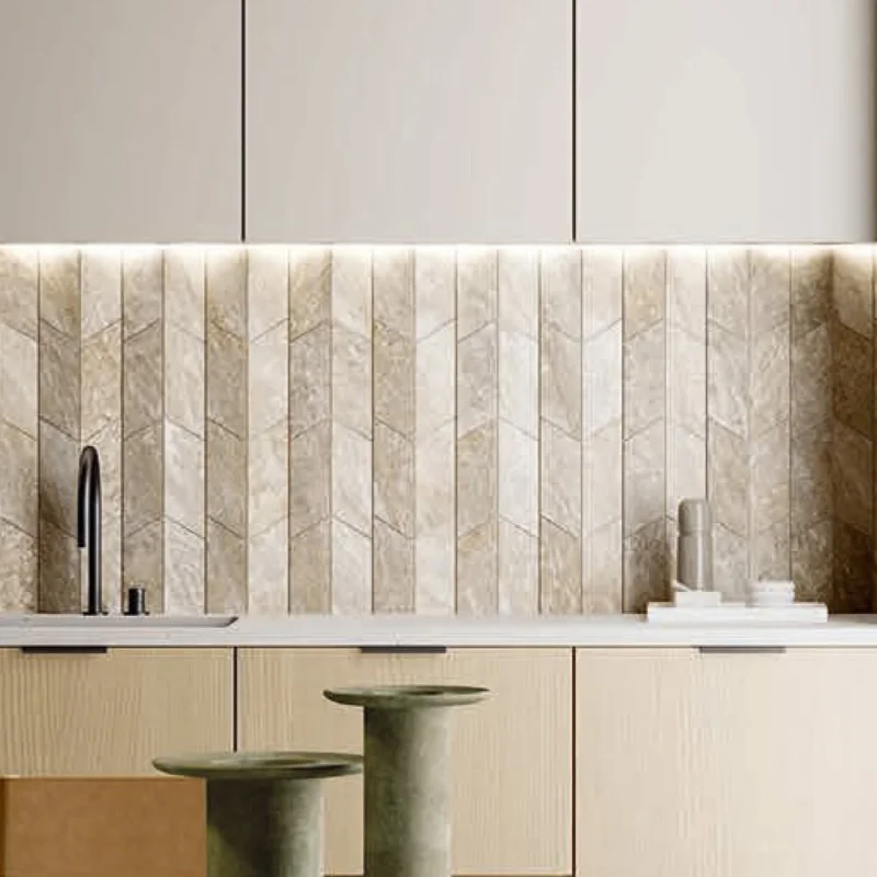 Door de beste technologische innovatie is de Elios Millennium Quartz door zijn details van de natuursteenlook tegel vrijwel niet te onderscheiden van kwartsiet. De mozaïek Futura heeft een sterk karakter door de kleurcontrasten en details, welke zorgen voor een ware eyecatcher. Verkrijgbaar per doos = 6 matjes van 28×30.