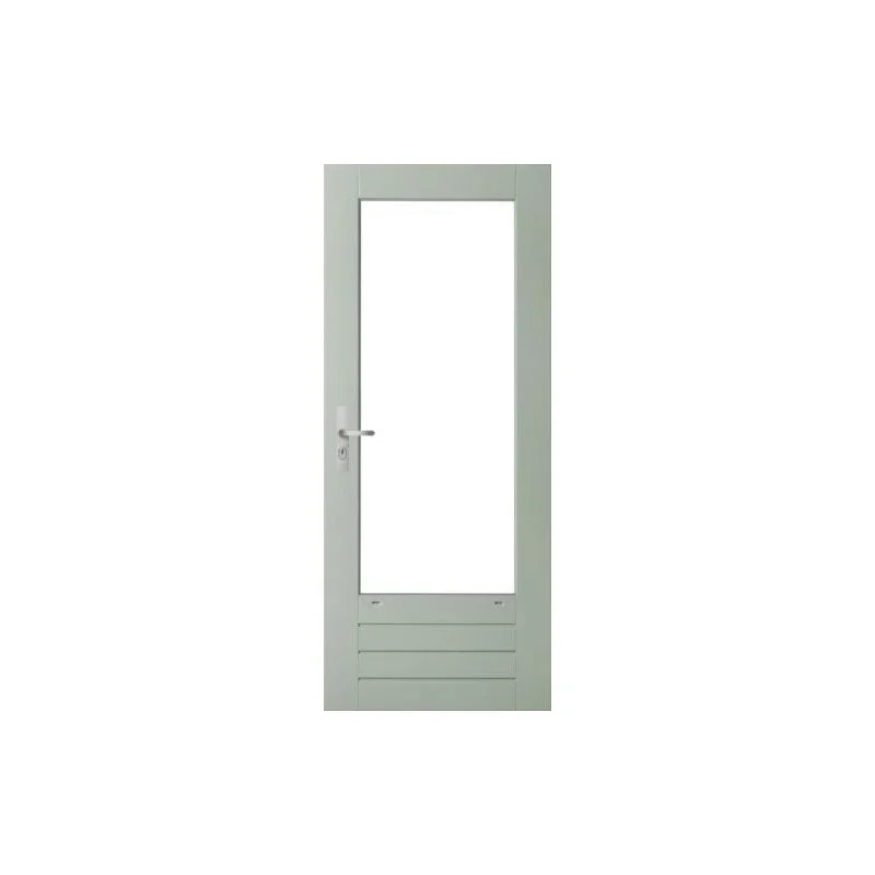 Deze Weekamp stapeldorpeldeur is gemaakt van hardhout en heeft een borstwering hoogte van 45 cm. Deze stapeldorpeldeur (achterdeur) is van hardhout en is gegrond. Verder heeft de deur ventilatiesleufjes en een zichtbare v-naad verbinding.Exclusief glas, beslag, slotgat, hang- en sluitwerk.