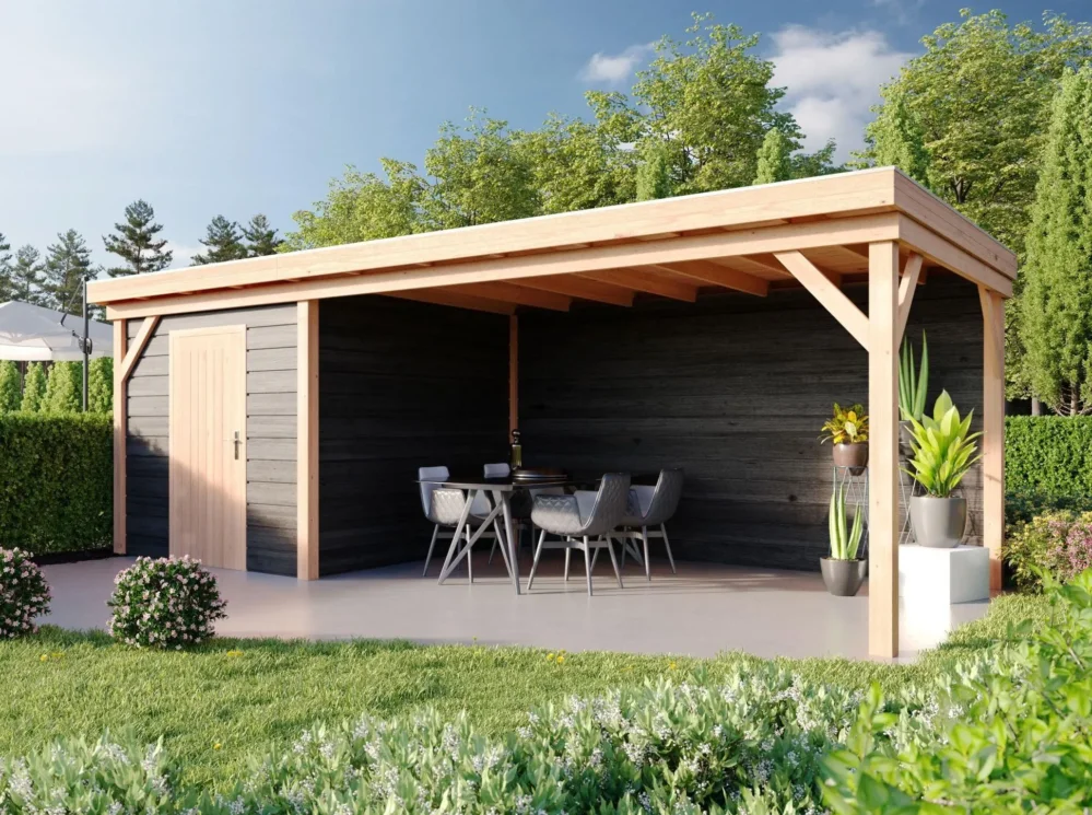 Ben je op zoek naar naar een overkapping met berging? Dan is dit WoodAcademy Bristol tuinhuis wellicht de perfecte match. De basis van het model bestaat uit een Douglas overkapping, door het plaatsen van zwarte vurenhouten wanden wordt er een tuinhuis gecreëerd. Het tuinhuis is te gebruiken voor verschillende doeleinden zoals een berging of hobbyruimte en de overkapping zorgt voor een fijne plek om heel het jaar door van je tuin te kunnen genieten. Het frame bestaat uit fijnbezaagd Douglashout met slanke staanders van 12×12 cm en overstek (tot 60 cm mogelijk) aan de voorkant. Dit geeft het model een traditionele look en feel.
