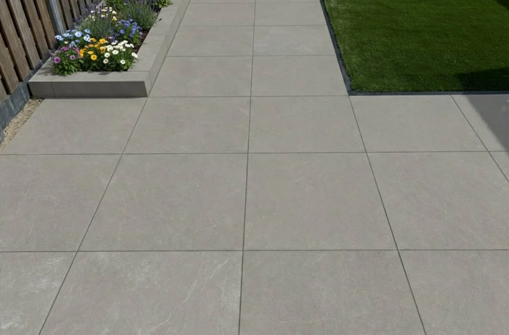 AANBIEDING- Keramische tuintegel Natuursteenlook – 60x60x4,8 cm – Ibiza smoke kopen? \\u2713 De specialist in bestrating \\u2713 Altijd scherp geprijsd \\u2713 De beste service \\u2713 Ruime keuze