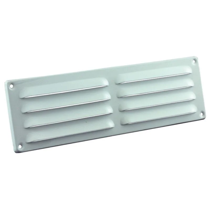 Dit aluminium schoepenrooster 300x90mm wit is smal en langwerpig, ideaal voor compacte ventilatieopeningen. De schuine lamellen beschermen tegen regen en vuil. Aluminium is licht en bestand tegen corrosie, waardoor dit rooster lang meegaat. De witte coating geeft een strakke uitstraling. Een praktische oplossing voor gevelventilatie.