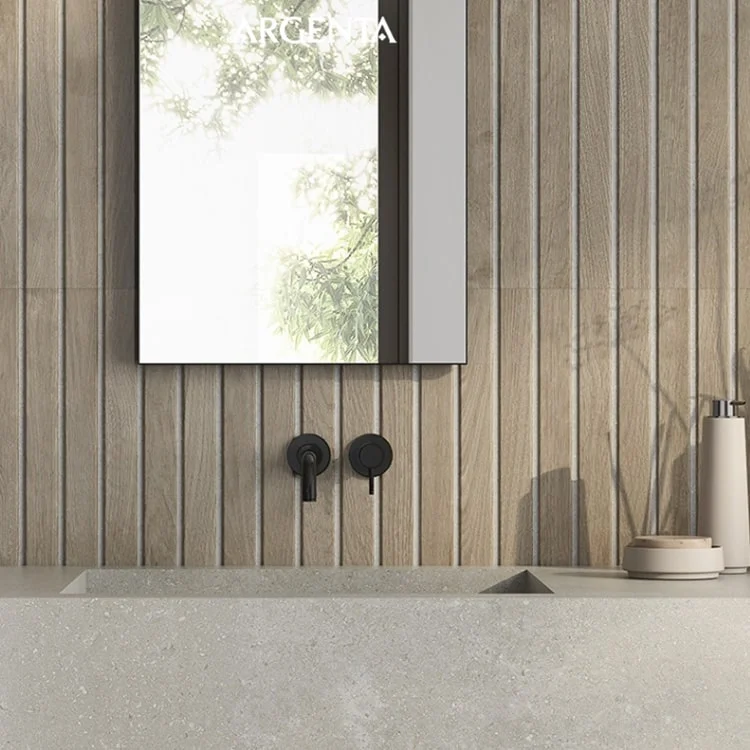 De collectie Bari valt op door zijn houtlook-afwerking en de combinatie van laagreliëf in de kleuren wit, cementgrijs en zwart. Bari biedt drie verschillende reliëfs zijn ontworpen voor binnenbekleding, welke zowel horizontaal als verticaal verwerkt kunnen worden. De keramische wandtegel is te verwerken in natte ruimtes (douche, wellness). De tegels zijn te bezichtigen in onze showroom.