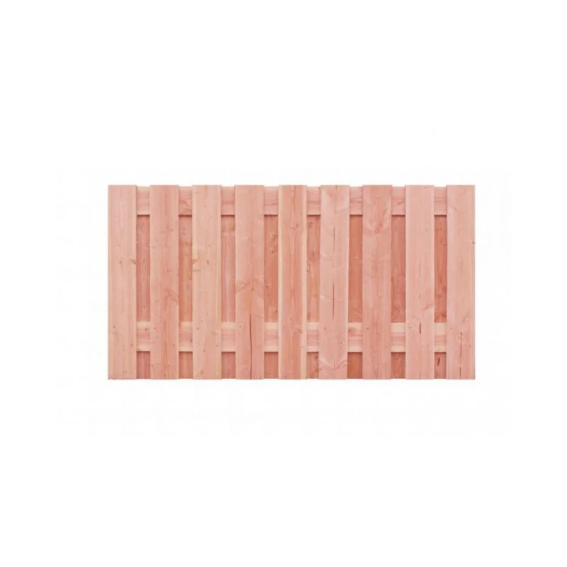 Dit tuinscherm van 90\\u00D7180cm is opgebouwd uit 17 verticale en 2 horizontale planken van rood geïmpregneerd vurenhout, ook wel bekend als coloured wood. Dankzij de impregnatie is het hout beter bestand tegen houtrot, insectenaantasting en verschillende weersinvloeden, waardoor het scherm langer meegaat dan onbehandeld tuinhout.De geschaafde planken geven het scherm een nette uitstraling, en de horizontale planken zorgen voor extra stabiliteit. Het scherm is geschikt voor gebruik als erfafscheiding en past perfect in een natuurlijke tuinomgeving. Daarnaast is dit scherm goed te combineren met betonnen palen en onderplaten, wat zorgt voor een solide én onderhoudsarme tuinafscheiding.