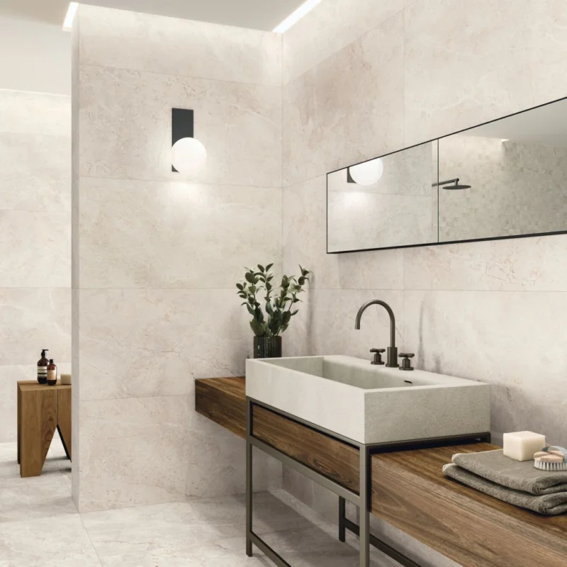 Augustus is een luxe marmerlook tegel, welke geïnspireerd is op het gewonnen marmer uit Centraal-Azië. De aardetinten zijn gebruikt als basis met fijne witte aders, welke subtiel zijn verborgen onder het reliëf wat een bewonderenswaardige sfeer creëert.