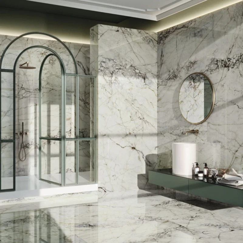 Oxyd Jewel is het resultaat van een zorgvuldige selectie van fijne, elegante aderen en verschillende soorten marmer genaamd Breccia Capraia. Deze tegel is te bezichtigen in onze showroom in de afmeting 60×120.