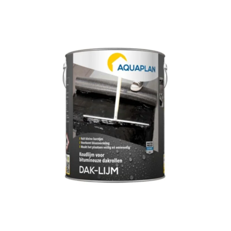 Aquaplan daklijm 5 liter is een hoogwaardige bitumenlijm voor het verlijmen van dakrollen, onderlagen en afdichtingsmaterialen op diverse ondergronden. Deze lijm is geschikt voor zowel nieuwbouw als renovatie van platte daken en hecht uitstekend op materialen zoals beton, hout en bestaande dakbedekking. Dankzij de krachtige kleefkracht ontstaat een duurzame en waterdichte verbinding. De 5-liter verpakking is ideaal voor grotere dakoppervlakken of meerdere toepassingen. De verwerking is eenvoudig met een borstel of spatel en vereist geen extra verwarming. Bestand tegen weersinvloeden en temperatuurschommelingen. Een betrouwbare en efficiënte oplossing voor professionele dakverlijming.