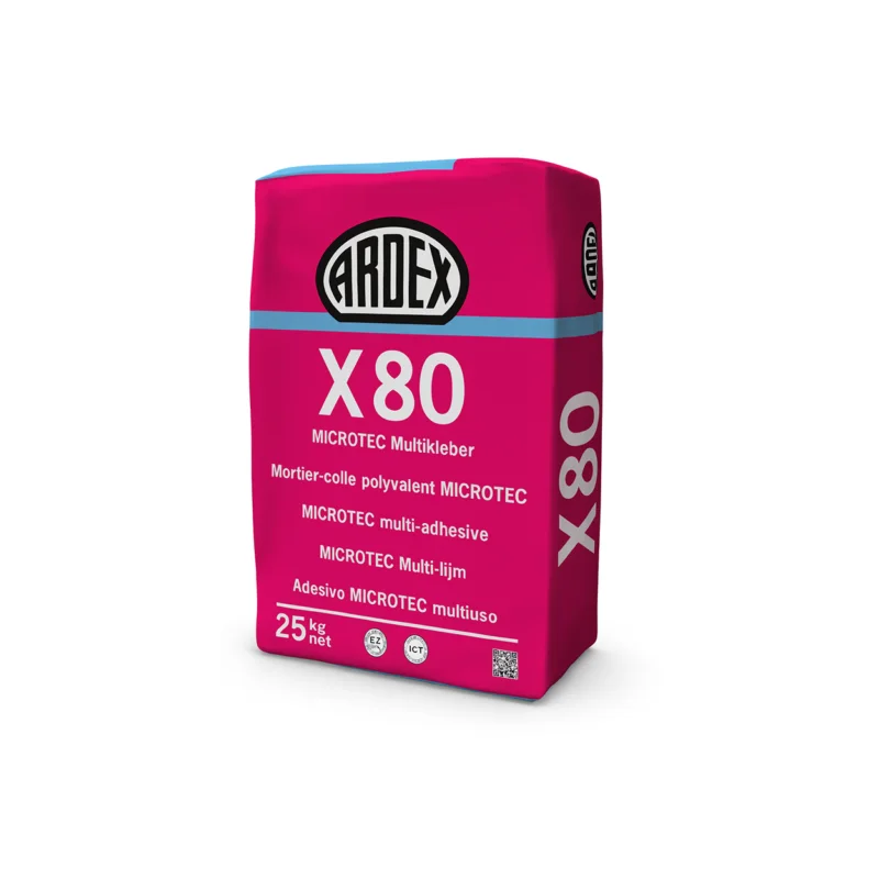 ARDEX X 80 is een krachtige cementgebonden flexlijm ,ook voor grootformaat tegels, geschikt voor binnen en buiten. Dankzij de MICROTEC-vezels, lange verwerkingstijd en variabele mengverhouding werk je nauwkeurig op wand én vloer \\u2013 van badkamer tot balkon.