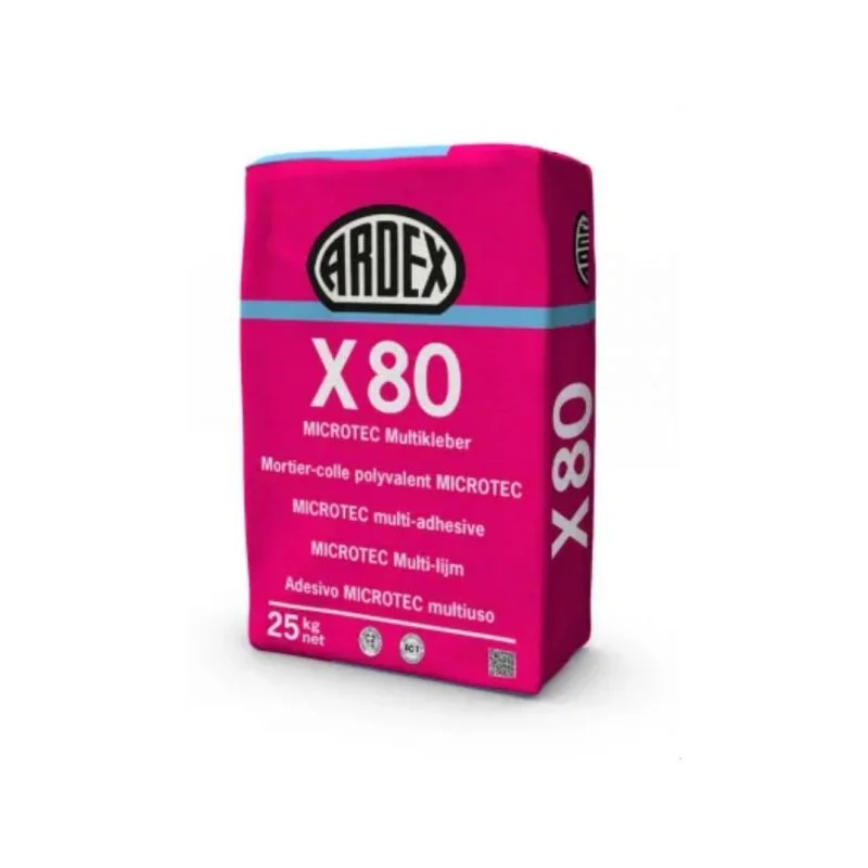 Ardex X 80 Microtec Multilijm 25kg is een flexibele tegellijm met Microtec technologie, ontworpen voor keramische tegels, natuursteen en grootformaat tegels. Deze cementgebonden lijm biedt sterke hechting, hoge vervormbaarheid en lange open tijd, waardoor verwerking makkelijker wordt. Geschikt voor binnen- en buitentoepassingen, op wanden en vloeren, inclusief vochtige ruimtes zoals badkamers en zwembaden. De hoge stabiliteit voorkomt het wegglijden van tegels en maakt het ideaal voor zowel dunne als middelbed verlijming. Dankzij de water- en vorstbestendigheid is het een duurzame oplossing voor diverse ondergronden, inclusief vloerverwarming.