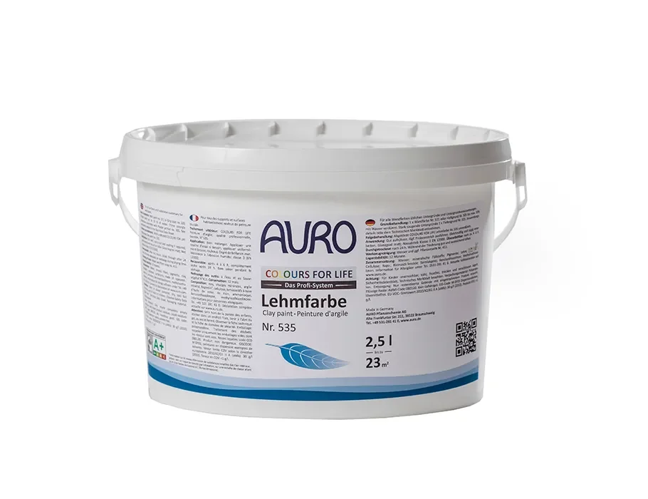 De Auro 535 Leemverf is een ecologische verf op basis van leem geschikt voor binnen. Deze professionele Leemverf is een mooie gladde muurverf, die geschikt is voor elk interieur. De Auro 535 is ademend en reguleert het vocht, hierdoor zorgt de leemverf voor een aangename sfeer in uw woonkamer.