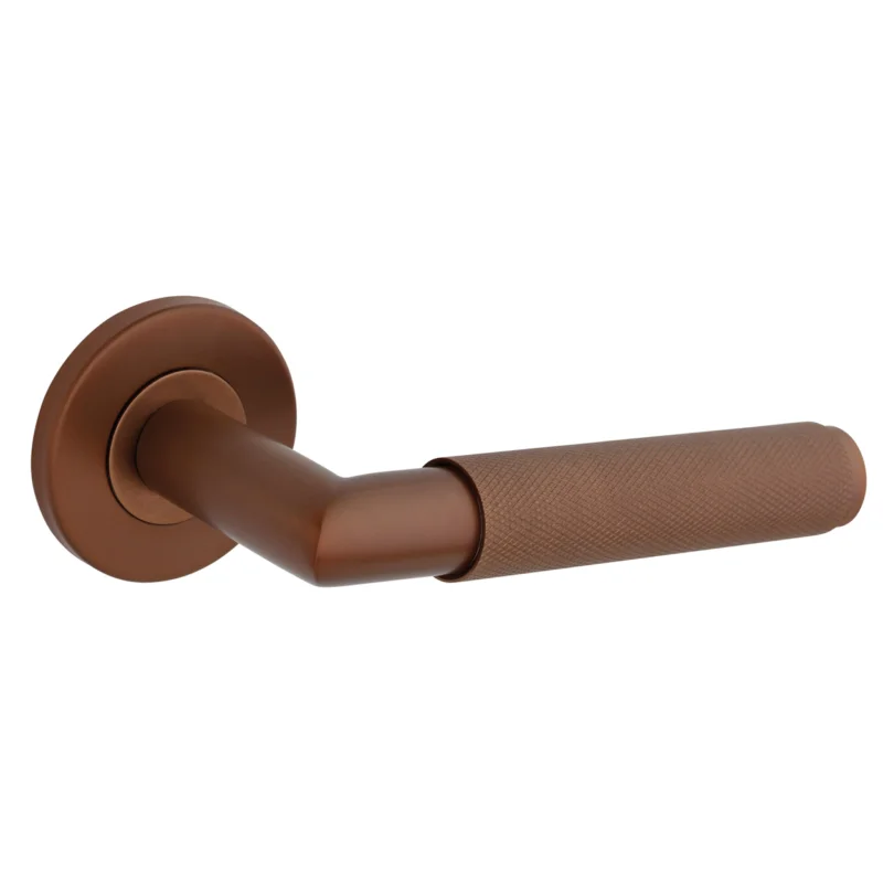 De Elements in brons brengt warmte in het interieur zonder in te leveren op designkracht. De greep met fijne structuur voelt robuust en luxe aan, terwijl de matte bronskleur voor een sfeervolle afwerking zorgt. De ronde rozet van 54 mm geeft de kruk een solide basis op iedere deur.