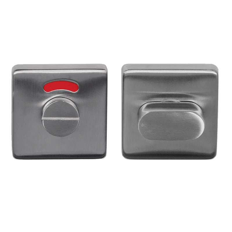 Deze vierkante toiletset uit de Austria Forza Best Buy serie biedt een moderne en praktische oplossing voor toilet- en badkamerdeuren. Uitgevoerd in mat RVS en voorzien van een vrij/bezet-venster aan de buitenzijde en een draaiknop aan de binnenzijde. Past perfect bij vierkante deurkrukken en rozetten.
