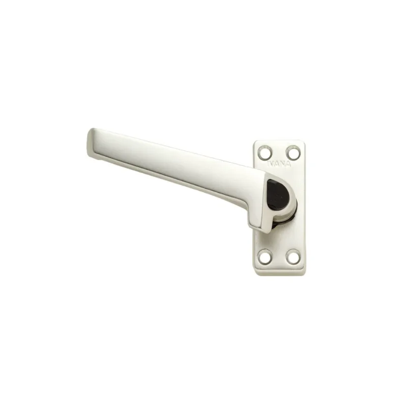 Sluiting voor houten ramen met drukknop. Dit hang- en sluitwerk is verkrijgbaar in links en rechts, zwart of aluminium.