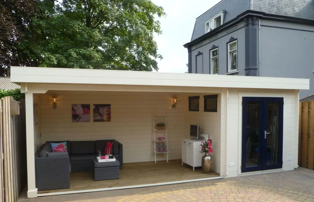 Verleng je zomer met de Joris blokhut met overkapping. Zo geniet je niet alleen in de zomer van een schaduwrijke plek, maar ook in de herfst van een beschermde plek tegen slecht weer. Er is keuze uit twee of drie vaste ramen, zodat er genoeg daglicht binnenkomt.