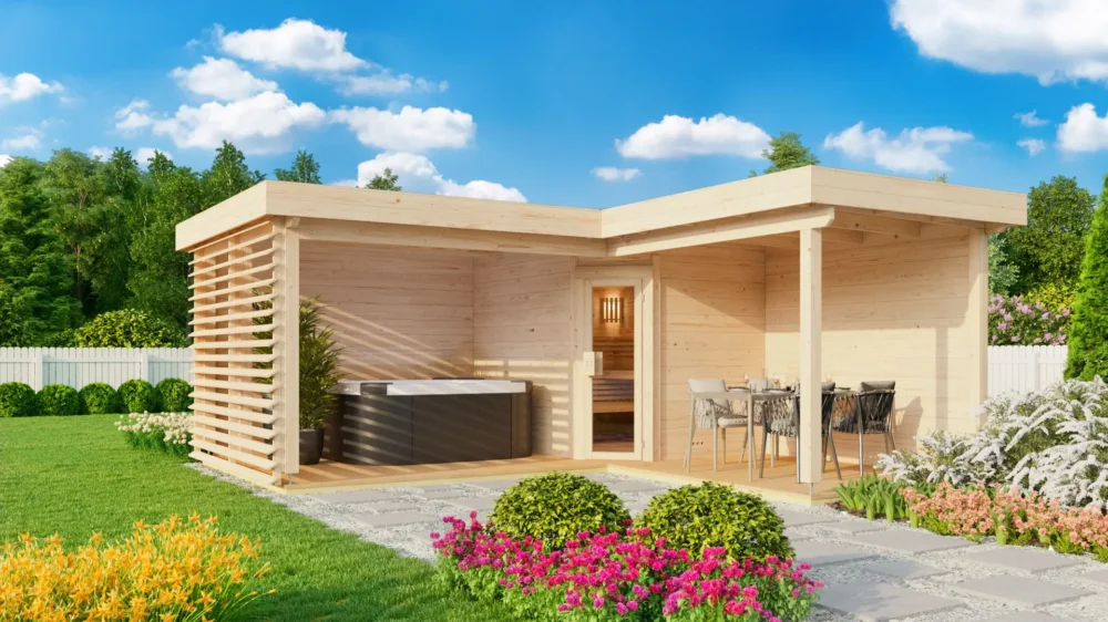 De Buitensauna Roy is een robuuste balkensauna van vurenhout die uitblinkt door zijn dubbele veranda. Deze unieke buitenruimte creëert niet alleen een luxe uitstraling, maar geeft je ook alle mogelijkheden om voor of na je saunasessie in de buitenlucht te ontspannen. Verkrijgbaar in meerdere wanddiktes past de Roy zich moeiteloos aan jouw wensen aan. Een echte blikvanger voor wie comfort en design wil combineren in de tuin.