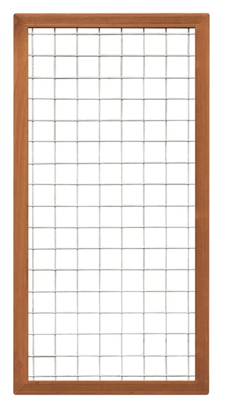 Dit is een trellisscherm gemaakt van Bangkirai, voorzien van een kader. Het is geassembleerd met roestvrijstalen schroeven, wat een duurzaam gebruik garandeert. De schermen hebben een grootte van 180 bij 90 cm, een maaswijdte van 10 bij 10 cm en een draaddikte van 3,8 mm. Ze zijn ontworpen om te worden bevestigd aan betonnen palen.