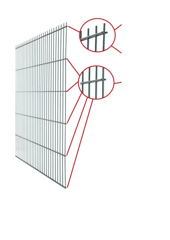 Onze gepoedercoate hekwerken zijn verkrijgbaar in twee kleuren: groen (RAL 6005) en antraciet (RAL 7016). De hekken zijn gemaakt van gepoedercoate stalen buizen en de gaasmatten van gepoedercoat staal. De horizontale dubbele draad is 6 mm dik en de verticale enkele draad is 5 mm dik.