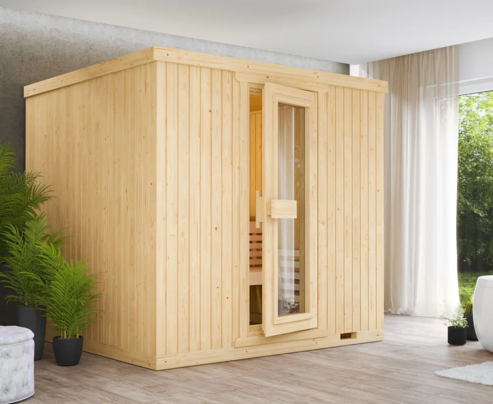 De Azalp Elementsauna Classic is een tijdloze binnen sauna die dankzij de geïsoleerde wanden van 77 mm zowel luxe als efficiëntie biedt. Je hebt de keuze uit vurenhout of elzenhout, zodat de sauna perfect aansluit bij jouw smaak en interieur. Deze sauna combineert degelijke bouwkwaliteit met een warme, natuurlijke uitstraling en is ideaal voor een ontspannen moment in je eigen huis.