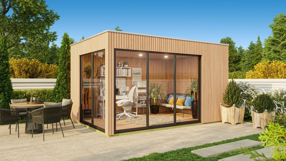 Azalp tuinkantoor Ponos biedt een extra leefruimte in je tuin. We hebben het dan wel tuinkantoor genoemd, maar dit model is ook zeer geschikt als hobbyruimte, poolhouse, buitenwoonkamer, atelier of guest house. De opties zijn eindeloos! Met de Ponos creëer je in ieder geval een fijne buitenruimte waar je je lekker in terug kunt trekken. Om ervoor te zorgen dat je comfortabel kunt werken tijdens alles seizoen, zijn de wanden van de Ponos standaard geïsoleerd met isolatie wol. Dit zorgt voor een aangenamere temperatuur in de winter en de zomer. De twee glazen schuifdeuren zorgen voor een makkelijke doorgang en veel natuurlijk licht. Zo kan je er heel het jaar door van de Ponos genieten!
