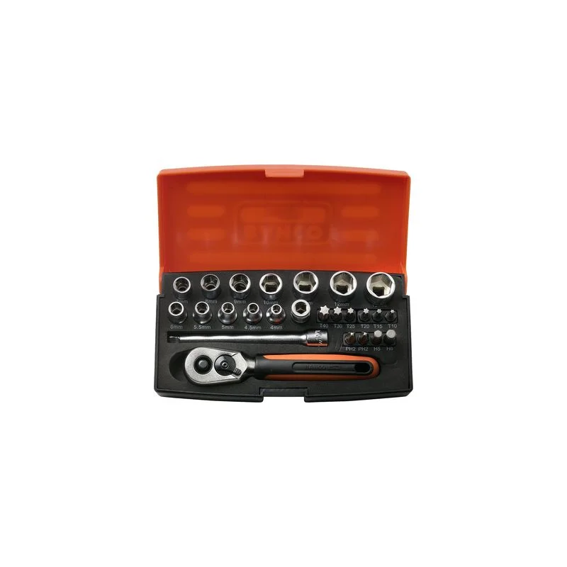 De Bahco SL25 doppenset is een uitgebreide 24-delige set, ideaal voor fijnmechanische klussen. Inclusief 1\\\\/4\\\\