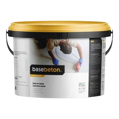 BaseBeton is ijzersterk, waterbestendig en hygiënisch. De laag Basa dient dun te worden gesmeerd en is bepalend voor de uiteindelijke uitstraling van de betonstuc (0.5-1 mm).