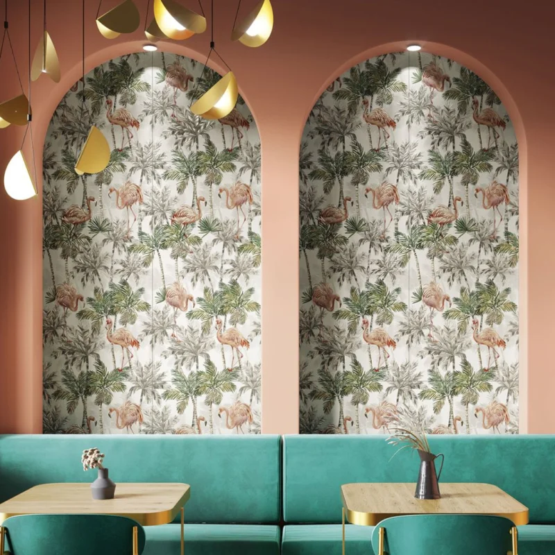 De serie Love & Decors van Elios geeft de verschillede designs een look van behang, maar heeft de voordelen van een keramische tegel. De tegels zijn voorzien van een relief.