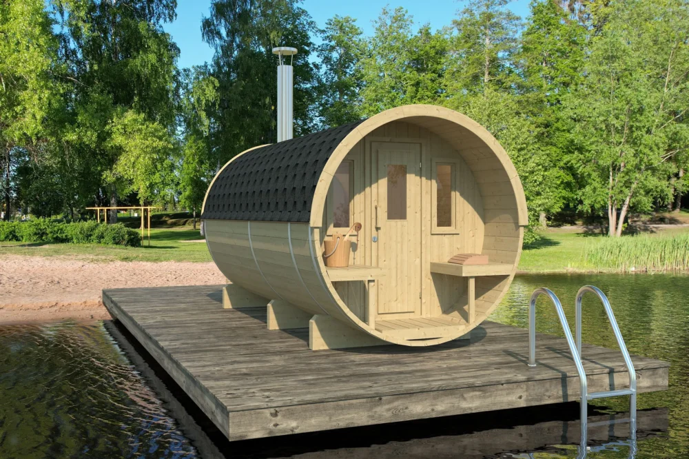 De wanden van dit model zijn gemaakt van Noord-Europees vurenhout. Vurenhout is een heel makkelijk te bewerken hout dat erg sterk is. Vurenhout heeft door zijn langzame groei een fijne vezelstructuur en bevat weinig hars en heeft kleine, vaste noesten. Wij raden sterk aan om de buitenzijde van de sauna te behandelen met een beits om het hout beter te beschermen tegen de verschillende weersomstandigheden en de levensduur te verlengen. De barrelsauna is ook verkrijgbaar met een thermisch gemodificeerde behandeling.