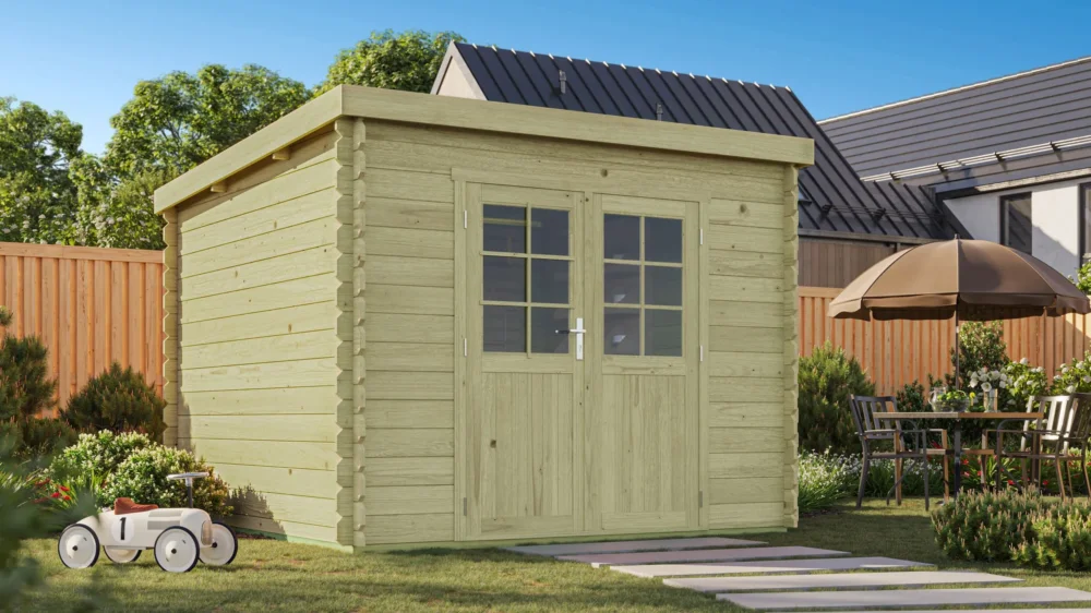 Debro heeft verschillende blokhutten die de functionaliteit van een bergruimte in een stijlvol ontwerp vertalen zodat het samenvloeit tot één mooi geheel. Blokhut Annecy is er daar een van. Een model die iets kleiner is dan een gemiddelde blokhut, maar daardoor juist perfect in een wat kleinere tuin past. De dubbele deuren met grote ramen openen naar buiten, zodat je binnen geen ruimteverlies hebt.