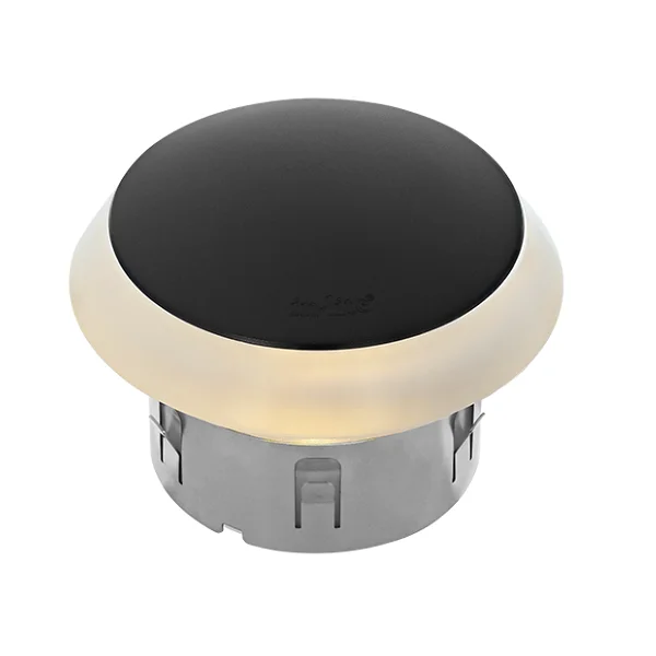 Grondspot PUCK BLACK 12V is met zijn rondom schijnende licht perfect als indicatieverlichting voor je oprit, pad, vlonder of steiger.