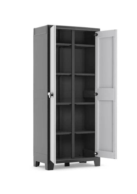 Keter ontwerpt hun opbergkasten en -boxen met zowel stijl als functionaliteit in gedachten. De Keter Titan Multispace Kast is daarin geen uitzondering. Deze kast met dubbele deur, acht planken én een extra stevige bodem biedt veel ruimte om overzichtelijk je spulletjes op te ruimen.