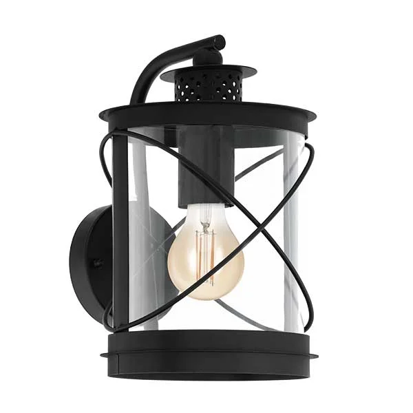 De HILBURN NEERWAARTS WL E27 zwart is een moderne wandlamp met een gericht lichtstraal, perfect voor het verlichten van gevels en muren.