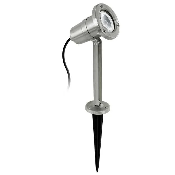 De NEMA staande LED buitenspot RVS is gemaakt van roestvrij staal en heeft een ronde draaibare kop. Hij wordt met een spies in de grond gestoken. Het product bevat een GU10 LED lamp, die een aangenaam warm wit licht geeft.