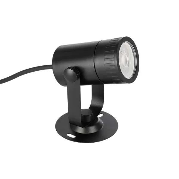 NEMA-Z tuinlamp zwart dimbare GU 10 LED RGB heeft een cilindrische verstelbare kop van zwart metaal en kunststof.