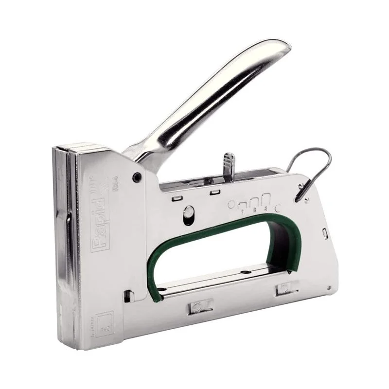 De Rapid Handtacker Metaal R34 + Niet 140 is een krachtige handtacker voor professioneel gebruik. Deze metalen handtacker is compatibel met nietjes van 140 mm, waardoor hij perfect is voor toepassingen zoals stoffering, isolatie en bevestigingswerk. Dankzij de ergonomische grip en stevige constructie ligt hij comfortabel in de hand en is langdurig gebruik geen probleem. Of je nu isolatiemateriaal vastzet of bekleding bevestigt, deze tacker biedt een snelle en efficiënte oplossing.