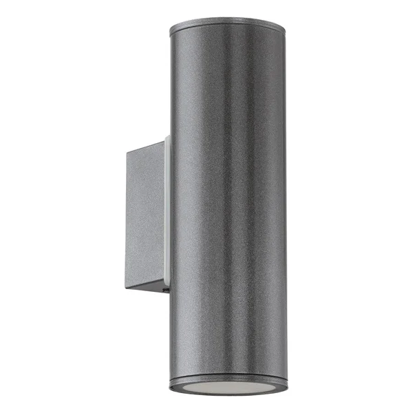 De RIGA LED wandlamp up/down antraciet heeft een antracietkleurige ronde metalen behuizing met een helder glazen kap aan beide uiteinden.