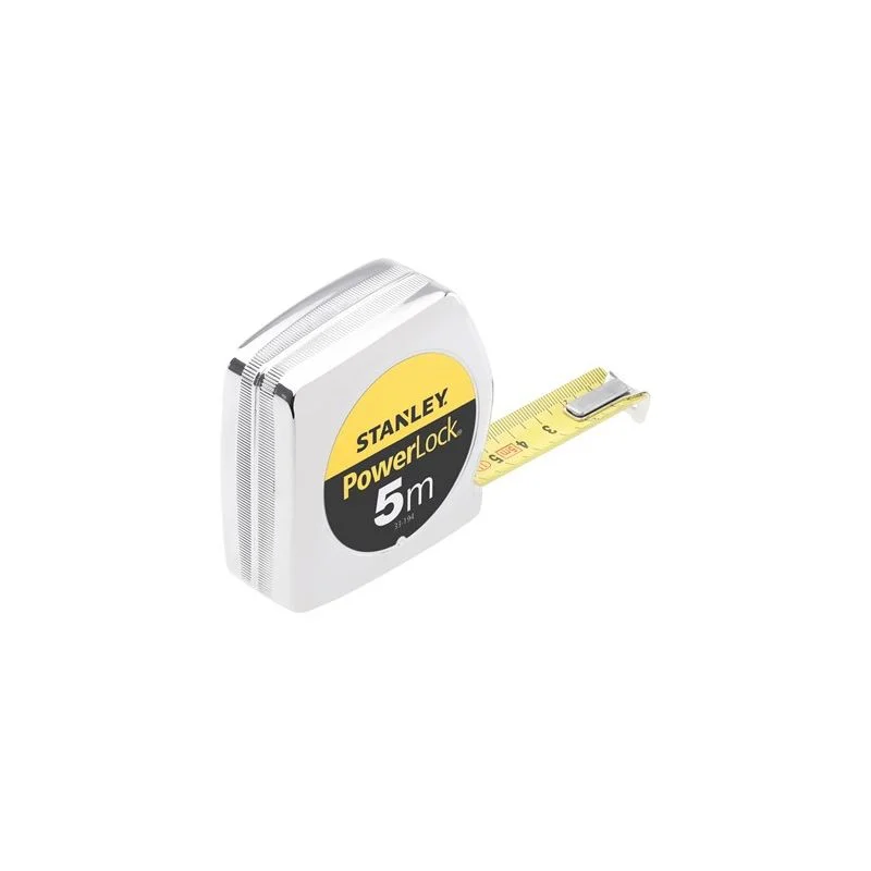 De Stanley rolbandmaat PowerLock® is een kwalitatieve rolbandmaat metaal. Het huis van de rolband is verchroomd en is voorzien van een broekklem zodat die makkelijk mee te dragen is. De band is voorzien van een mylarpolyester-deklaag wat voor 10x meer bescherming zorgd dan een traditionele meetband. Lengte: 5 meterBreedte: 19mm