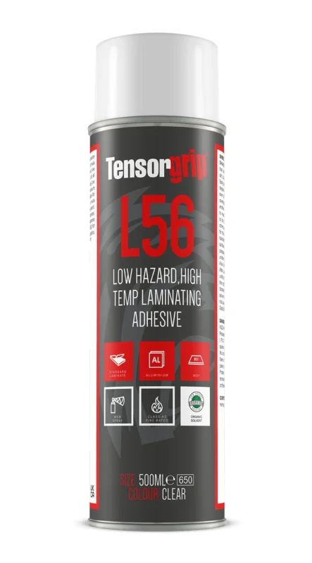 TensorGrip L56 is een verspuitbare contactlijm. Bij dit soort lijmen is het belangrijk dat de lijm op beide te verlijmen oppervlakken wordt gespoten. Met de TensorGrip spuitlijm L56 spuitbus 500 ml kun je 1,5 tot 2 m\\u00B2 dubbelzijdig verlijmen. De TensorGrip spuitlijm L56 is naast een spuitbus van 500 ml ook verkrijgbaar in een drukvat van 22 liter.