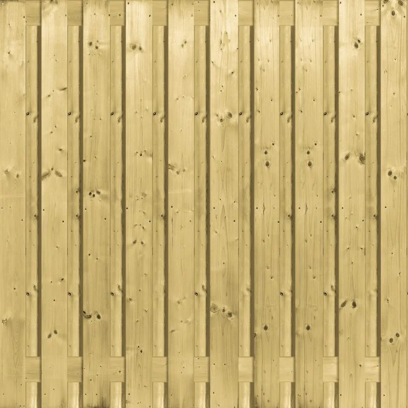 Groen geïmpregneerd grenen tuinscherm 180x180cm. Dit tuinscherm is gemaakt van geschaafd grenen hout en heeft een afmeting van 90x180cm. Door de gladde afwerking van het geschaafde hout heeft het scherm een nette uitstraling. Het scherm bestaat uit 19 verticale en 2 horizontale planken en is te combineren met betonnen palen. Dankzij de groene impregnatie is het hout extra beschermd tegen weersinvloeden, wat het scherm zeer geschikt maakt voor duurzaam gebruik in de tuin.