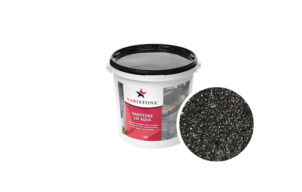 Varistone LM Aqua is een kant-en-klare voegmortel voor je bestrating. Deze voegmortel kun je gebruiken bij betontegels en keramische tegels. De minimale voegbreedte die je gebruikt is 3 millimeter. De belasting van bestrating die ingevoegd is met LM Aqua mag niet al te zwaar zijn. LM Aqua is vooral geschikt voor je terras en looppaden. Voor een oprit kun je beter Varistone MST gebruiken.