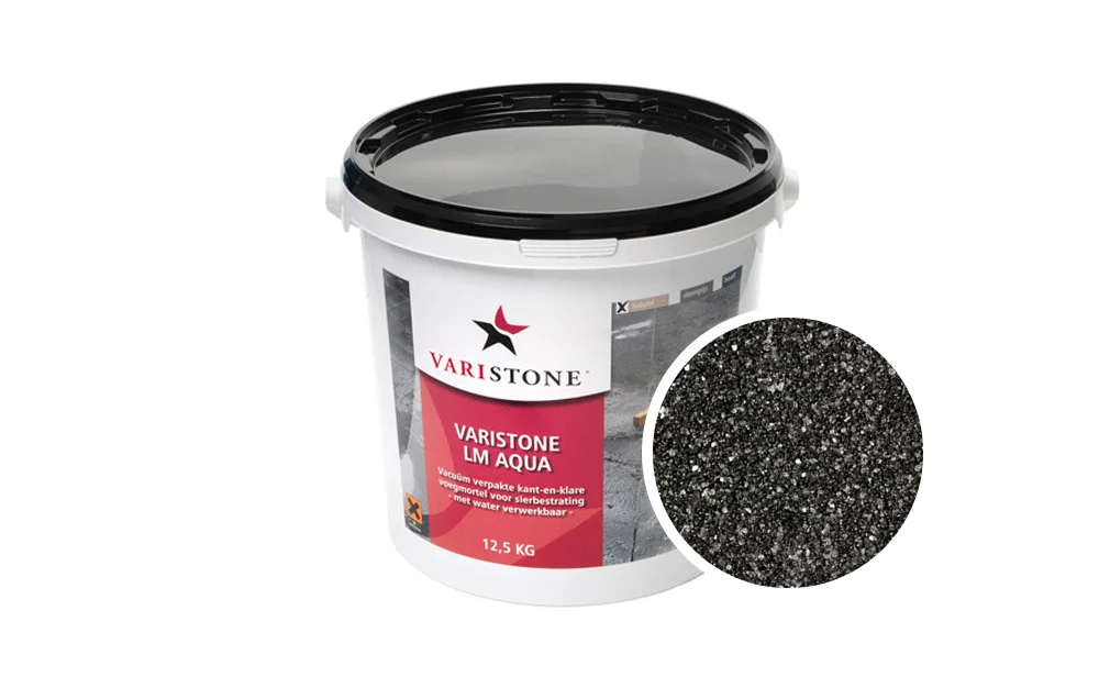 Varistone LM Aqua is een kant-en-klare voegmortel voor je bestrating. Deze voegmortel kun je gebruiken bij betontegels en keramische tegels. De minimale voegbreedte die je gebruikt is 3 millimeter. De belasting van bestrating die ingevoegd is met LM Aqua mag niet al te zwaar zijn. LM Aqua is vooral geschikt voor je terras en looppaden. Voor een oprit kun je beter Varistone MST gebruiken.
