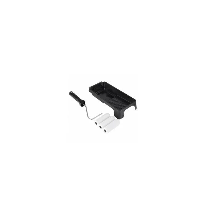 Aflakset met 3 x schuimroller fijn en ronde top van 10 cm een beugel en bijpassende verfbak.