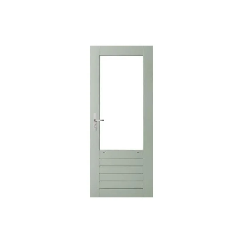 Deze Weekamp stapeldorpeldeur is gemaakt van hardhout en heeft een borstwering hoogte van 66 cm. Deze stapeldorpeldeur (achterdeur) is van hardhout en is gegrond. Verder heeft de deur ventilatiesleufjes en een zichtbare v-naad verbinding.Exclusief glas, beslag, slotgat, hang- en sluitwerk.