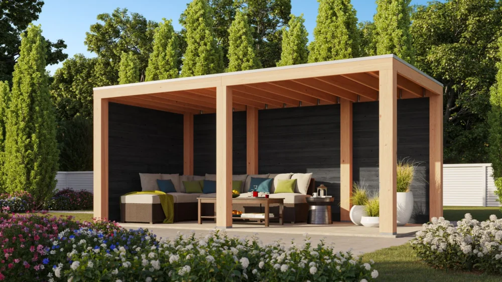De Moonstone Excellent is de ideale vrijstaande overkapping om heel het jaar door onder te kunnen ontspannen en heel het jaar door van je tuin te kunnen genieten. Of je nu je loungeset eronder kwijt wilt of een complete buitenkeuken, de opties zijn eindeloos. Het frame van geschaafd Douglashout met robuuste staanders van 19.5×19.5 cm zorgt voor een strakke en moderne uitstraling. Standaard leverbaar met enkelzijdige onbehandelde Douglas houten wanden of zwart gespoten vurenhouten wanden.