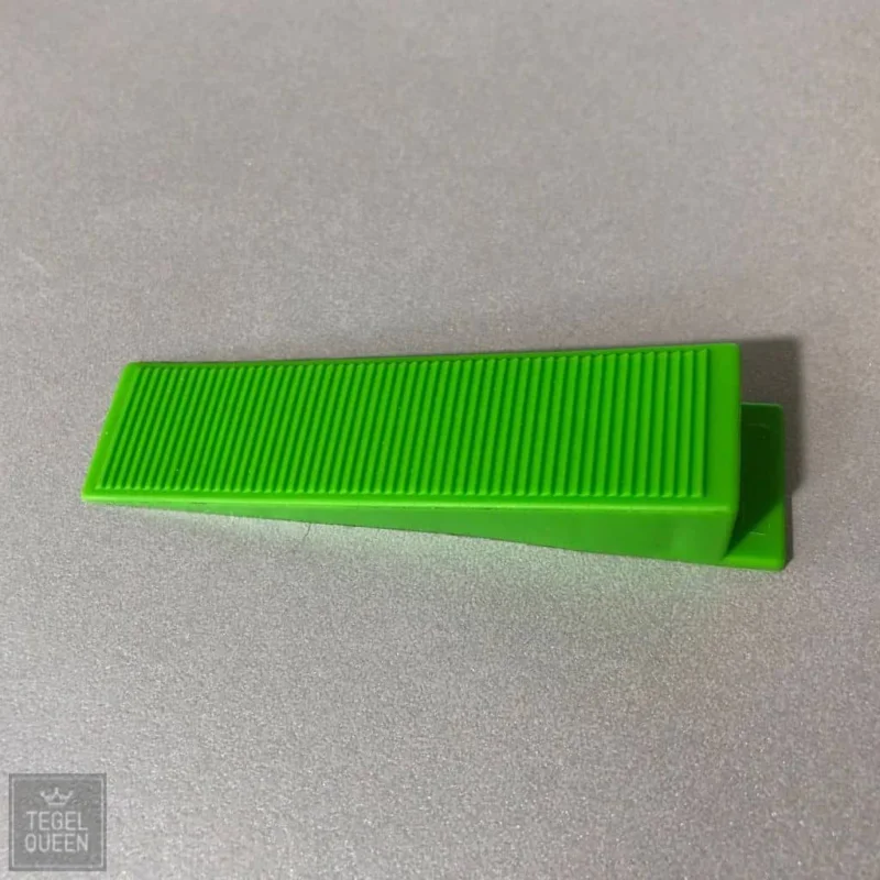 De keggen worden gebruikt voor het verkrijgen van de juiste druk op de tegels met als resultaat dat het geheel vlak is.Tegels kunnen door middel van dit systeem snel met de hand gelegd worden. Daarna kan met de tang de juiste druk worden gegeven.De keggen zijn herbruikbaar.