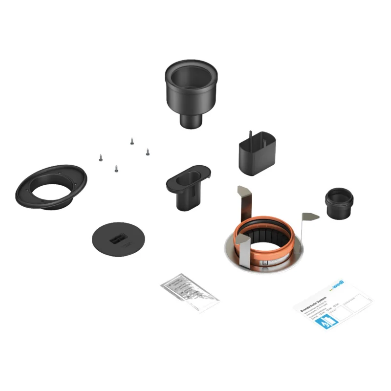 De wedi Fundo gootafvoer met brandstop verticaal DN-50 is een speciale afvoerset voor wedi Fundo douchevloeren met sleufdrain die worden toegepast in woningscheidende vloeren. Dankzij de geïntegreerde brandstop voldoet deze afvoer aan de brandwerende eisen, zonder dat aanvullende brandwerende manchetten nodig zijn.