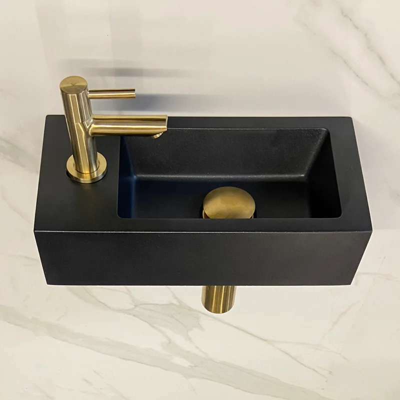 • Kleur: Quartz zwart met geborsteld messing