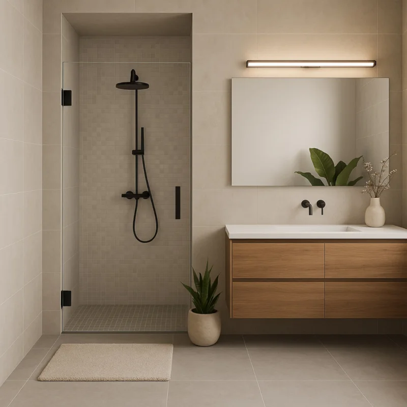 De gunmetal afwerking zorgt voor een subtiel industrieel accent. Mooi in combinatie met betonlook tegels, zwarte kranen of houttinten voor een stoere maar warme sfeer.