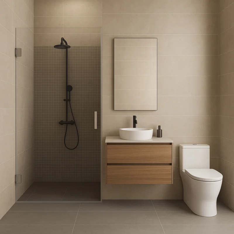 De afwerking in geborsteld staal past perfect in badkamers met betonlook, antraciet of strakke houtaccenten. Ideaal voor een stijlvol en stoer interieur.