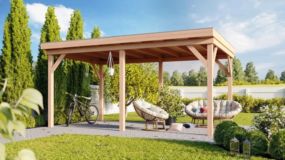 Omdat de modellen van WoodAcademy modulair zijn. Betekent dit dat je meer vrijheid hebt in het bepalen van de indeling van de overkapping. Bepaal zelf of je wanden wilt toevoegen aan de overkapping of plaats er een glazenwand in. Ook kan het overstek aan de voorkant zelf bepaald worden, door het verschuiven van de palen kun je een overstek creëren tot 60 cm. Let wel op dat dit invloed heeft op je funderingsplan.